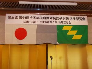 女子駅伝 「皇后杯第44回全国都道府県対抗女子駅伝」 今年は11日に開催されました。 夜に近畿地方の宮崎県人会の皆さんが 選手、監督、コーチなどを招いての慰労会です。 この日はいろんな所で選手の慰労会を兼ねて 県人会が催されているようです。